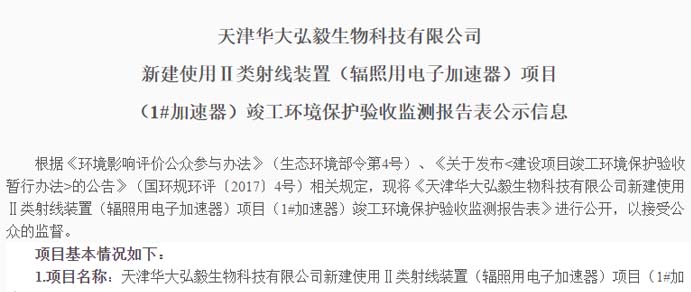 桂林華大生物科技有限公司使用電子加速器輻照項(xiàng)目竣工環(huán)境保護(hù)驗(yàn)收信息公示